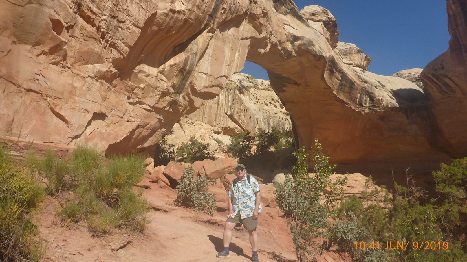 The hike wasn't too strenuous, however, it was certainly more scary than I remember. The first time I hiked the trail I was young and foolish. I remember walking under the arch on that trip. Not this one! I hugged the rock wall on that last bit, geez, that's a long way down.