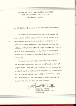 The Transportation Corps was established 31 July 1942 by Executive Order 9082. Transporters have a long history of answering the nations call. As far back as the Revolutionary War when General George Washington appointed the first Wagon Master, Transporters have been there to move and sustain American fighting forces.†